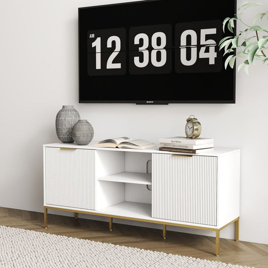 Modern TV Stand with Wave-Design Doors, Open Shelf & Adjustable Shelf - Stylish and Functional for Your Living Room