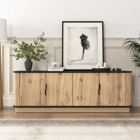 Natural Wood Grain Four-Door MDF TV Cabinet, An Ideal Choice for TV And Item Storage in Modern Homes, A Perfect Blend of Nordic And Modern Minimalist Styles, With Dimensions of 55*15.7*18.9 inches