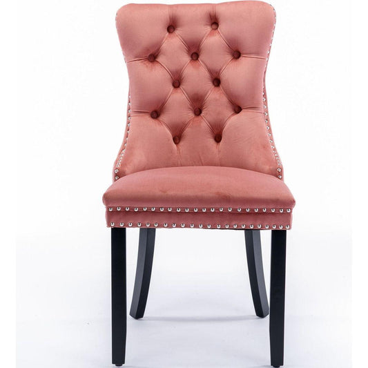 Nikki Collection Modern, High-end Tufted Solid Wood Contemporary Velvet Upholstered Dining Chair with Wood Legs Nailhead Trim 2-Pcs Set,Pink
