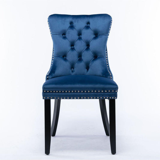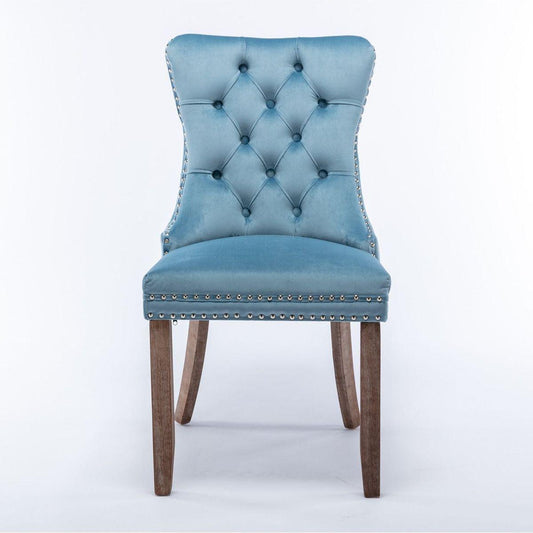 Nikki Collection Modern, High-end Tufted Solid Wood Contemporary Velvet Upholstered Dining Chair with Wood Legs Nailhead Trim 2-Pcs Set,Blue