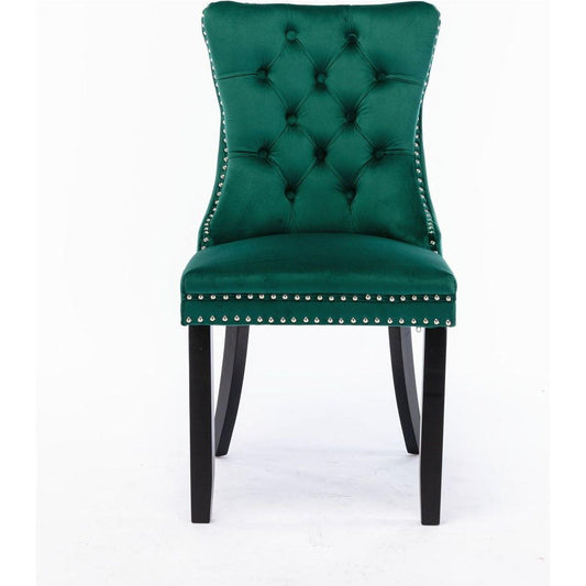 Nikki Collection Modern, High-end Tufted Solid Wood Contemporary Velvet Upholstered Dining Chair with Wood Legs Nailhead Trim 2-Pcs Setlive-Green