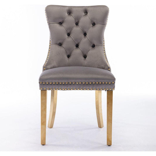 Nikki Collection Modern, High-end Tufted Solid Wood Contemporary Velvet Upholstered Dining Chair with Golden Stainless Steel Plating Legs,Nailhead Trim,Set of 2,Gray and Gold