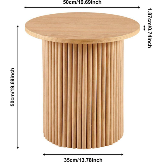 Oak Wood Veneer Tabletop 19.69 Inch Round Coffee Table, Farmhouse Circle Coffee Table MDF Table-top with Metal Base, Sofa Side Table for Living Room, Reception Room