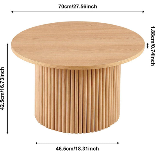 Oak Wood Veneer Tabletop 27.56 Inch Round Coffee Table, Farmhouse Circle Coffee Table MDF Table-top with Metal Base, Sofa Side Table for Living Room, Reception Room