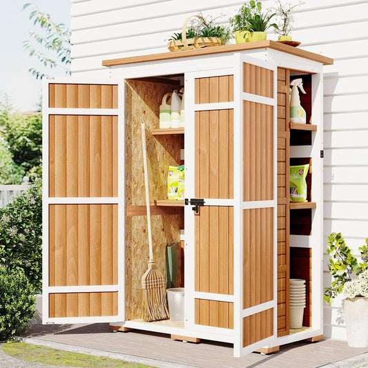 Outdoor 5.5ft Hx4.1ft L Wood Storage Shed, Garden Tool Cabinet with Waterproof Asphalt Roof, Four Lockable Doors, Multiple-tier Shelves, Natural