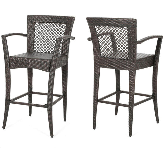 Outdoor 46" Wicker Barstool (Set of 2), Multi Brown Finish