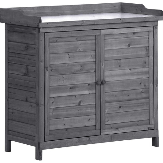 Outdoor 39" Potting Bench Table, Rustic Garden Wood Workstation Storage Cabinet Garden Shed with 2-Tier Shelves and Side Hook, Grey
