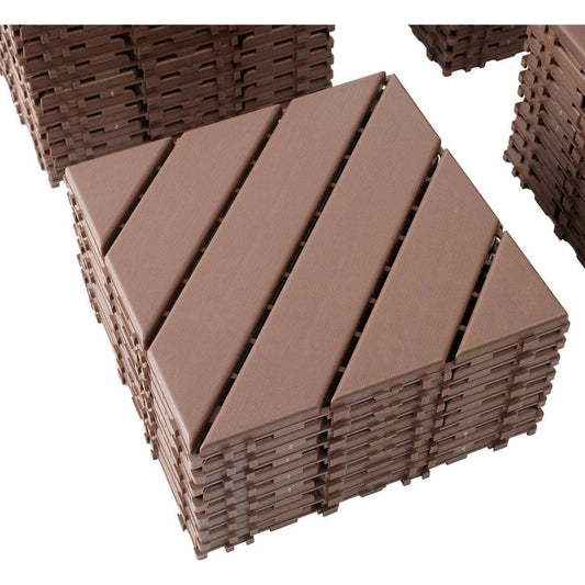 Plastic Interlocking Deck Tiles,44 Pack Patio Deck Tiles,12"x12" Square Waterproof Outdoor All Weather Use, Patio Decking Tiles for Poolside Balcony Backyard, Brown