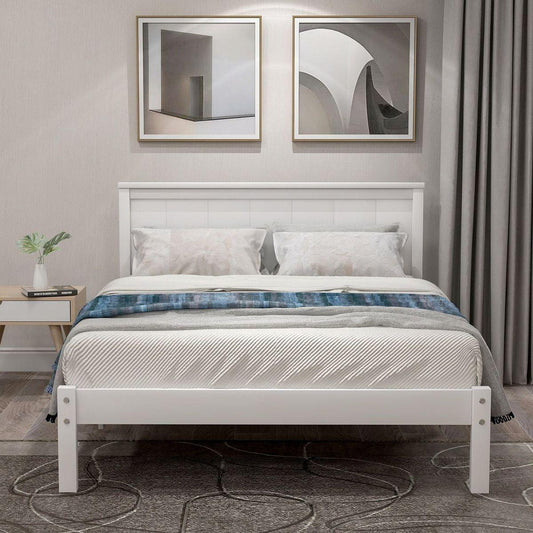 Platform Bed Frame with Headboard, Wood Slat Support, No Box Spring Needed, Full, White