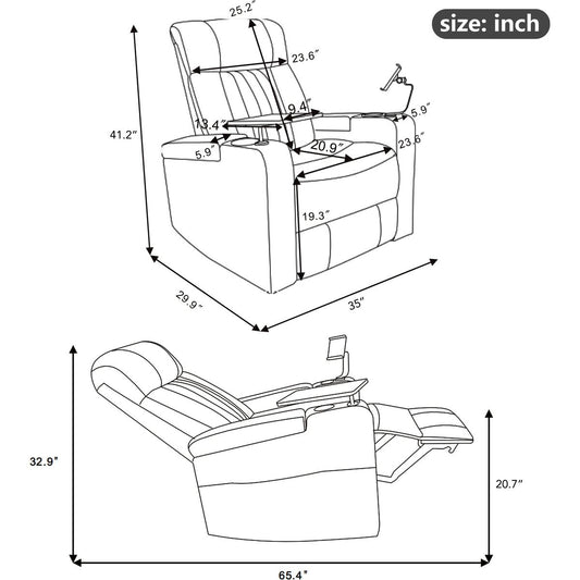 Premium Power Recliner with Storage Arms, Cupholders, Swivel Tray Table and Cell Phone Stand, Brown PU Leather, 35'' x 29.9'' x 41.2''