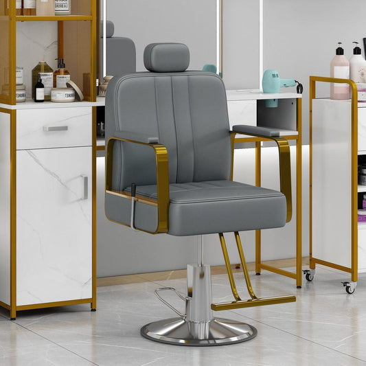 Premium Reclining barber Chair Salon Chair for Hair Stylist with Heavy Duty Hydraulic Pump, 360 Rotation, Tattoo Chair Shampoo Beauty Salon Equipment, Max Load Weight 400 Lbs, Gray