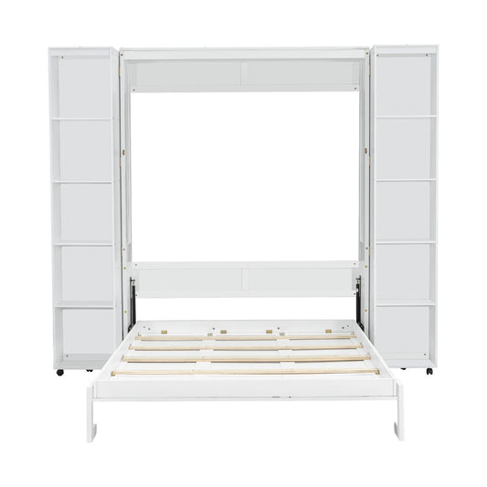 Queen Murphy Bed Wall Bed with Storage Doors, White