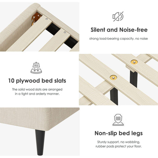 Queen Size Bed Frame Upholstered Platform Bed with Adjustable Headboard,Linen Fabric Padded,Modern Simple Style Platform Bed No Box Spring Needed, Easy Assembly, Beige
