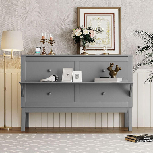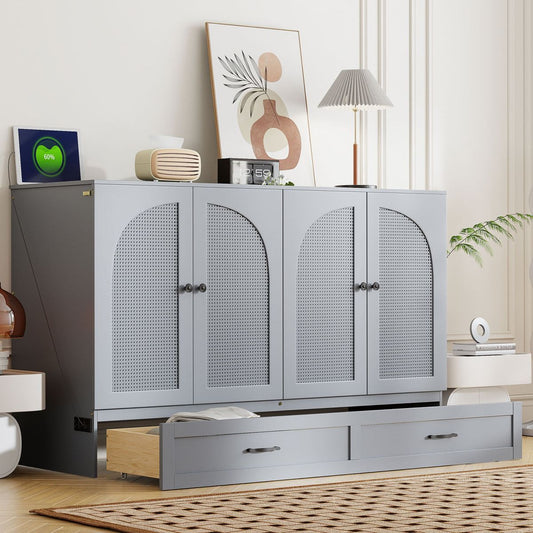 Queen Size Murphy Bed with USB Ports, Large Drawers and Metal Handles,Gray