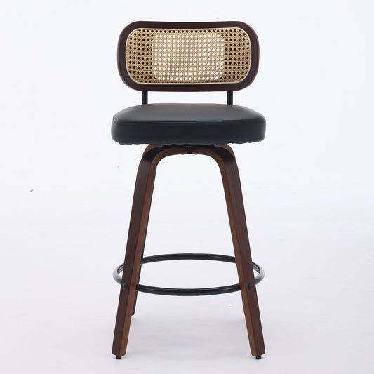 Set of 3 Counter Height Bar Stools - 26 inch Rattan Counter Height Stools with Cane Back, Upholstered Seat, Walnut Craftsmanship, Swivel Counter Stools for Island/Kitchen/Counter/Bar (Walnut /Black)