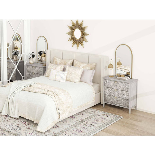 3 Drawer Cabinet with Hollow-Carved 3 Drawer Dresser Storage Chest with Metal Handles For Entryway Living Room Bedroom