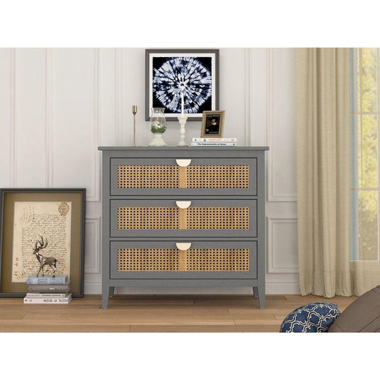 3 Drawer Cabinet, Natural rattan, American Furniture, Suitable for bedroom, living room, study