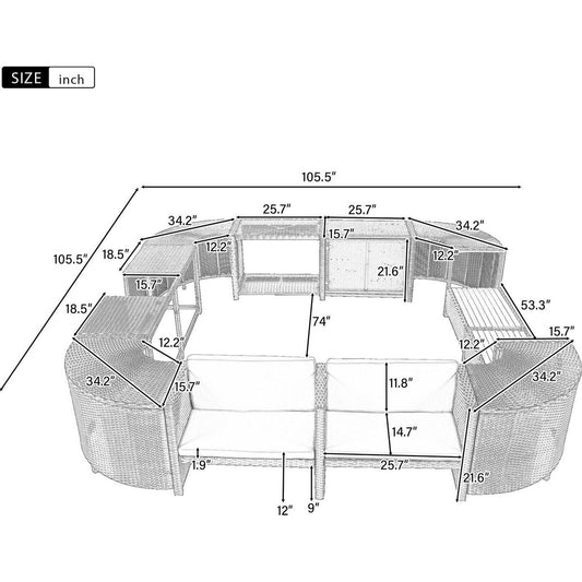 Spa Surround Spa Frame Quadrilateral Outdoor Rattan Sectional Sofa Set with Mini Sofa,Wooden Seats and Storage Spaces, Beige
