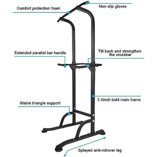 Sport Power Tower Workout Dip Station Pull Up Bar, Height Adjustable Multi-Function Dip Stand for Home Gym Strength Training Fitness Equipment