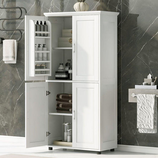 Tall and Wide Bathroom Floor Storage Cabinet, Bathroom Storage Unit, Freestanding Cabinet with 4 Doors, Adjustable Shelves, White