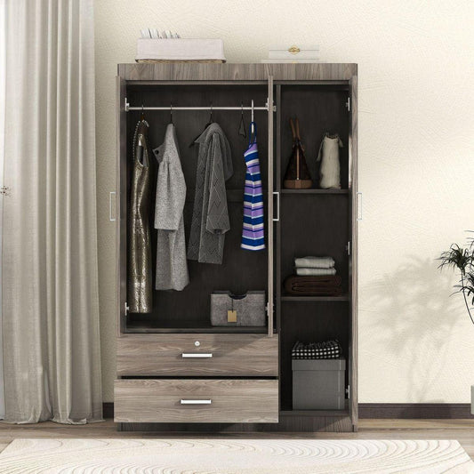 3-Door Wardrobe with 2 Drawers, Wood Grain Effect in Gray