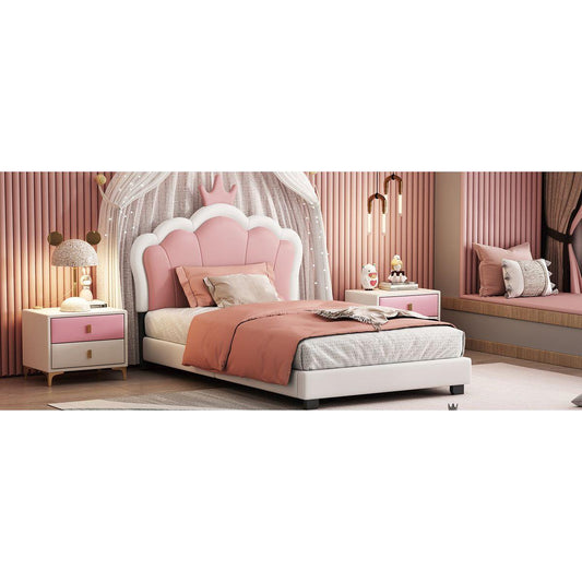 Twin size Upholstered Princess Bed With Crown Headboard,Twin Size Platform Bed with Headboard and Footboard, White+Pink(Old SKU:WF303336AAK)
