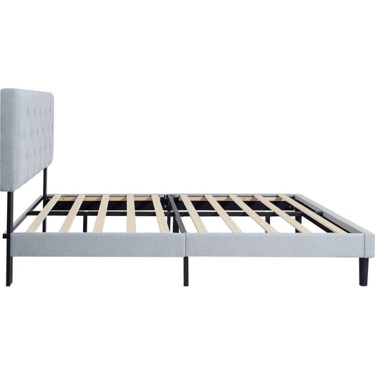 Twin Size Upholstered Platform Bed Frame with Modern Button Tufted Linen Fabric Headboard, No Box Spring Needed, Wood Slat Support, Easy Assembly, Grey
