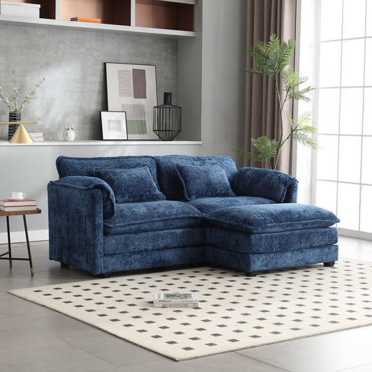 UNITED WE WIN Chenille fabric, removable armrests with side pockets, high density sponge filling, oversized double sofa with footstool