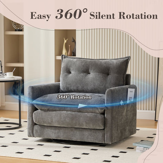 UNITED WE WIN Swivel Barrel Chair - Mid Century Modern Chair, Thick Padded Arm Chair with Solid Metal Base, Comfortable Single Sofa Chair, Swivel Accent Chair for Living Room Bedroom