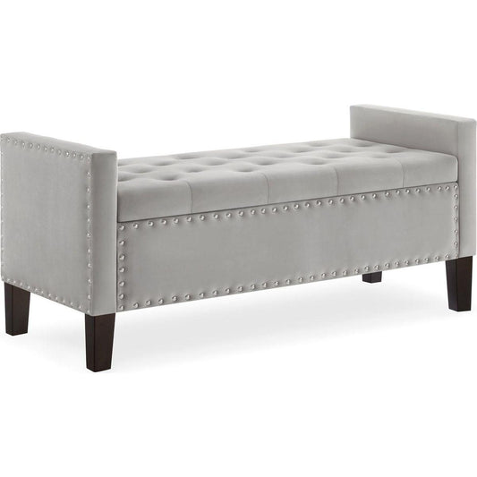 Upholstered Tufted Button Storage Bench with nails trim,Entryway Living Room Soft Padded Seat with Armrest,Bed