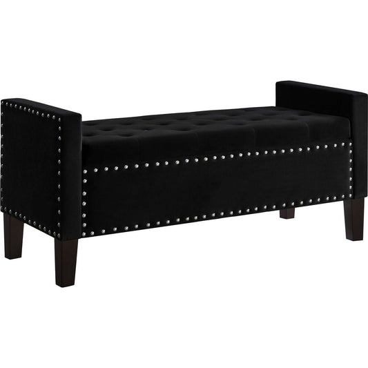 Upholstered Tufted Button Storage Bench with nails trim,Entryway Living Room Soft Padded Seat with Armrest,Bed Bench-Black