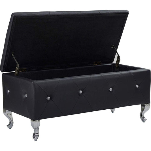 Upholstered Storage Ottoman Bench For Bedroom End Of Bed Faux Leather Rectangular Storage Benches Footrest With Crystal Buttons For Living Room Entryway (Black)