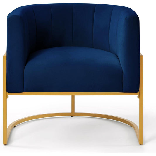 Upholstered Velvet Accent Chair with Golden Metal Stand,Mid-Century Living Room Leisure Chair with Curve Backrest -Navy