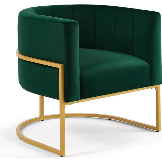 Upholstered Velvet Accent Chair with Golden Metal Stand,Mid-Century Living Room Leisure Chair with Curve Backrest -Jade(Emerald)