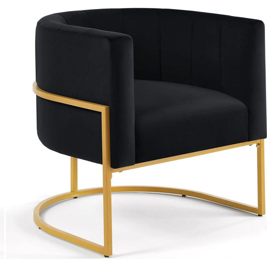 Upholstered Velvet Accent Chair with Golden Metal Stand,Mid-Century Living Room Leisure Chair with Curve Backrest -Black