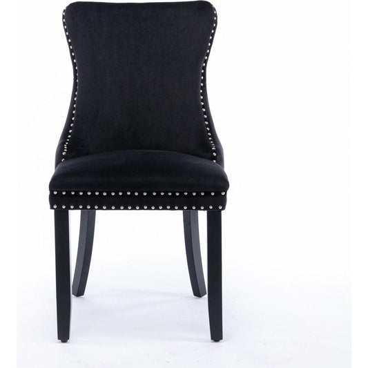 Upholstered Wing-Back Dining Chair with Backstitching Nailhead Trim and Solid Wood Legs, Set of 2, Black, 8809BK, KD