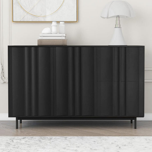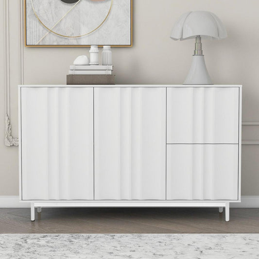 Wave Pattern Storage Cabinet with 2 Doors and 2 Drawers, Adjustable, Suitable for Study,Entrance and Living Room