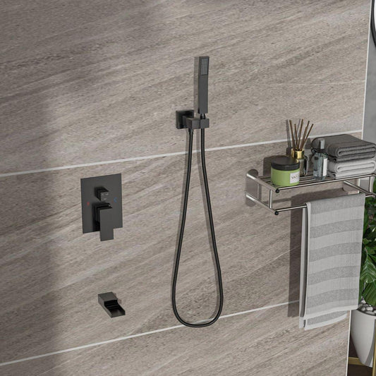 10" Rain Shower Head Systems with Waterfall Tub Spout, Matte Black, Wall Mounted shower