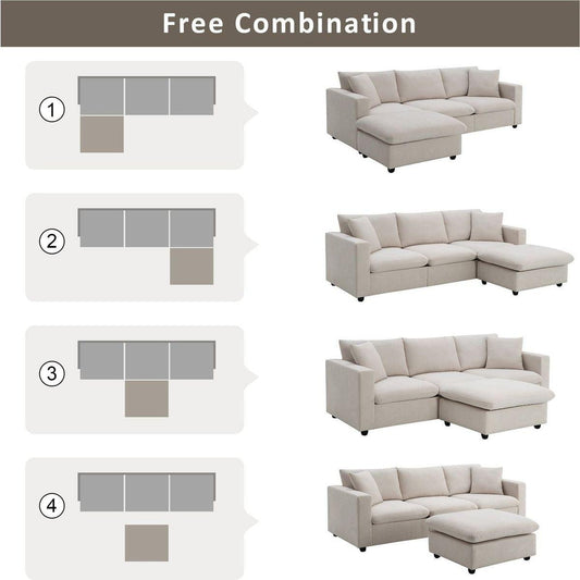 100.4x64.6" Modern Sectional Sofa,L-shaped Couch Set with 2 Free pillows,4-seat Polyester Fabric Couch Set with Convertible Ottoman for Living Room, Apartment, Office,4 Colors