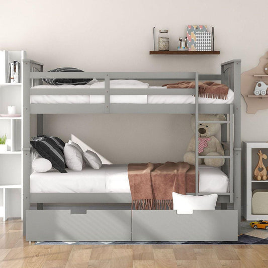 Full over Full Bunk Bed with Drawers and Ladder for Bedroom, Guest Room Furniture-Gray