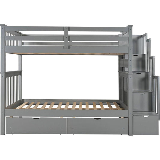 Bunk Beds Twin over Twin Stairway Storage function Gray