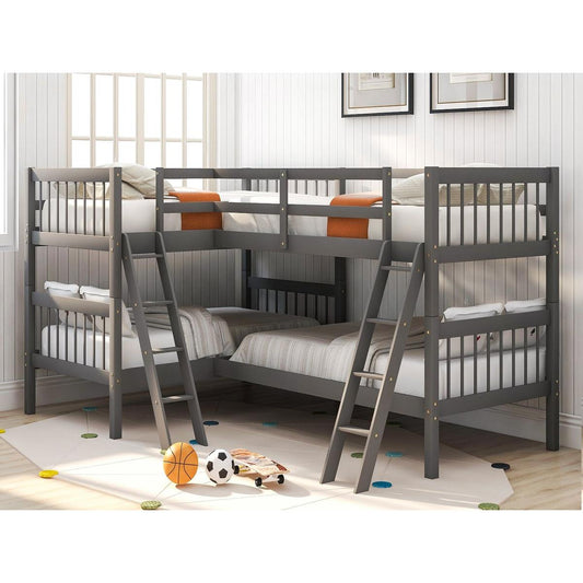 L-Shaped Bunk Bed with Ladder,Twin Size-Gray