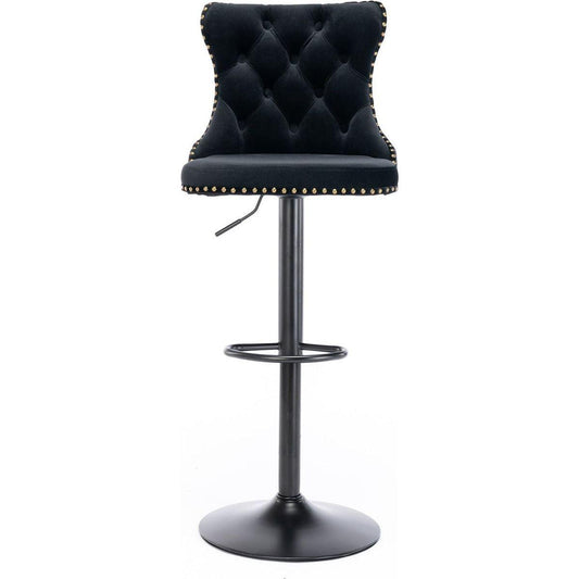 Set of 2 Bar Stools, with Chrome Footrest and Base Swivel Height Adjustable Mechanical Lifting Velvet + Golden Leg Simple Bar Stool-black
