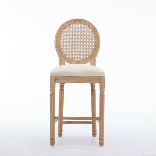 Solid Wood Bar stools Set of 2 Classic French Country Wooden Barstools with Upholstered Seating Kitchen Bar Stool for Bar Counter Rattan - Beige