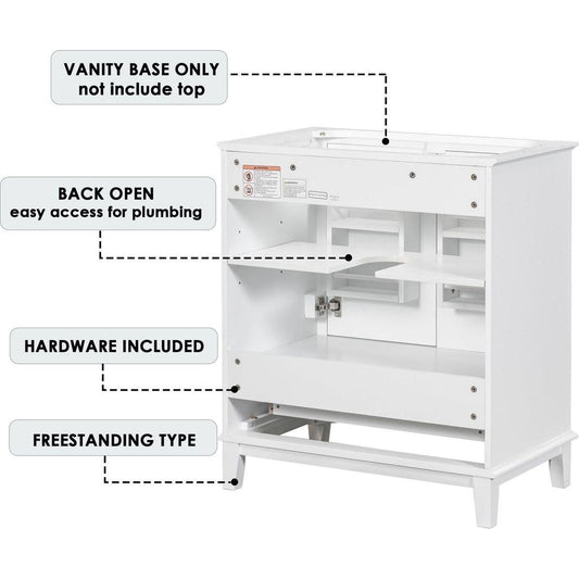 30" Bathroom Vanity without Sink, Base Only, Multi-functional Bathroom Cabinet with Doors and Drawer, Solid Frame and MDF Board, White