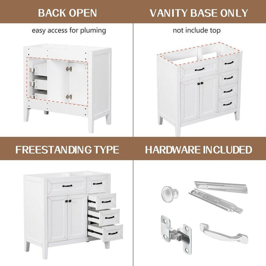 30" Bathroom Vanity without Sink, Cabinet Base Only, Bathroom Cabinet with Drawers, Solid Frame and MDF Board, White