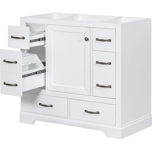36" Bathroom Vanity without Sink, Cabinet Base Only, Six Drawers, Multi-Functional Drawer Divider, Adjustable Shelf, White