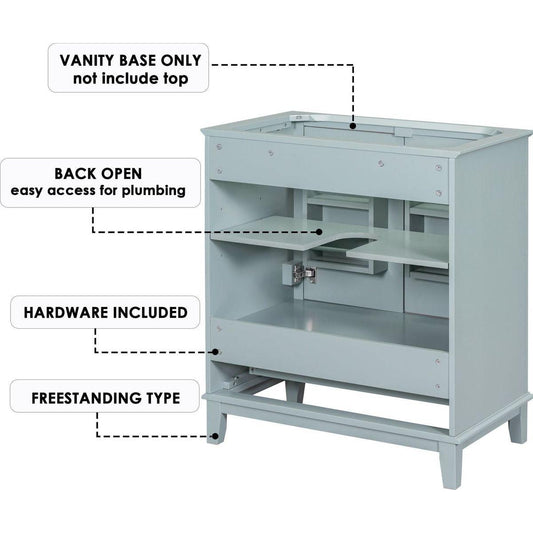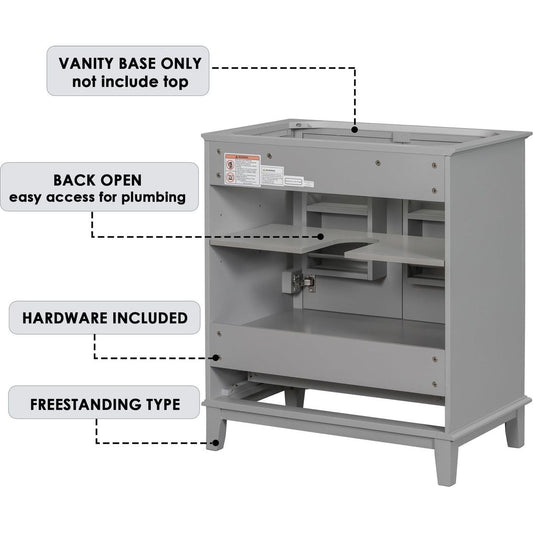 30" Bathroom Vanity without Sink, Base Only, Multi-functional Bathroom Cabinet with Doors and Drawer, Solid Frame and MDF Board, Grey