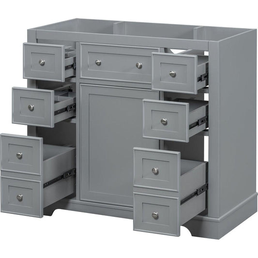 36" Bathroom Vanity without Sink, Cabinet Base Only, One Cabinet and Six Drawers, Grey