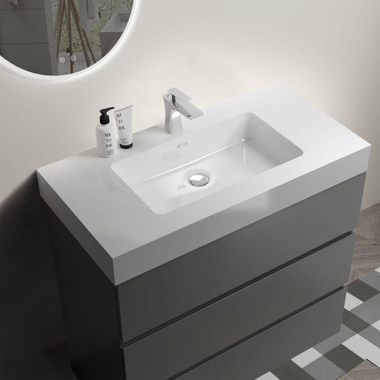 36 Inch Wall Mounted Bathroom Vanity With Gel Sink